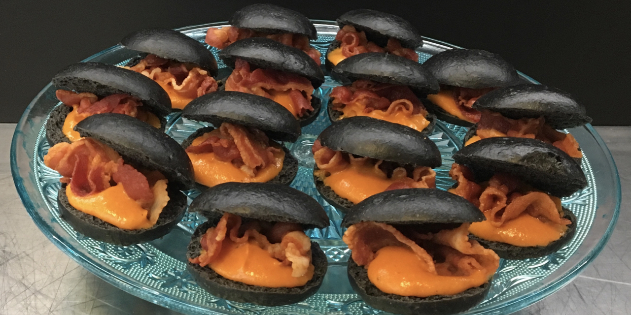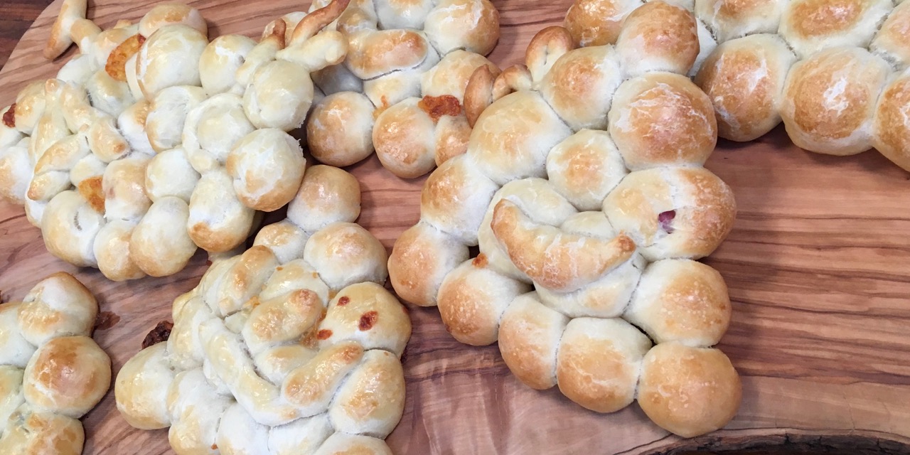 Panino all'amaretto al vapore, con zucca e pancetta di maiale
