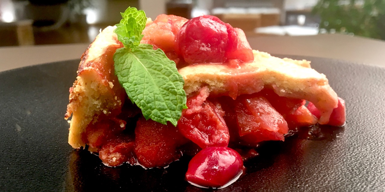 Prepara un caramello a secco con lo zucchero semolato. Nel frattempo pela le mele e tagliale a cubettoni. Togli il nocciolo alle amarene, aggiungi la frutta in padella e fai cuocere assieme al caramello. NON SI DEVONO SFALDARE. Stendi la pasta brisè e ricopri una tortiera abbastanza alta. Versa la frutta caramellata dentro e chiudi tutto con altra pasta. Decora il bordo e fai un foro al centro della torta per far uscire il vapore che si creerà con la cottura, spennella con dell'uovo e cospargi di zucchero superfino. Cuoci a 170°C fino a completa doratura della superficie. Lascia raffreddare la torta, tagliane una fetta e servi.