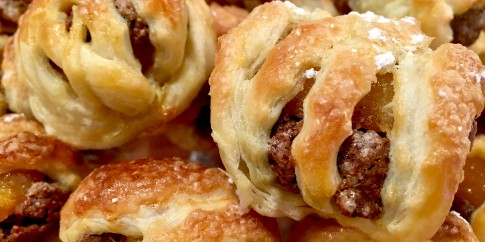 Stendi la pasta sfoglia a mm 3, ritaglia dei dischetti e accomodali su una teglia coperta di carta da forno, spolverizzali di zucchero e poni sopra le albicocche farcite, con sopra un altro dischetto spennellato con dell’uovo Inforna a 180 °C per 20' circa.
