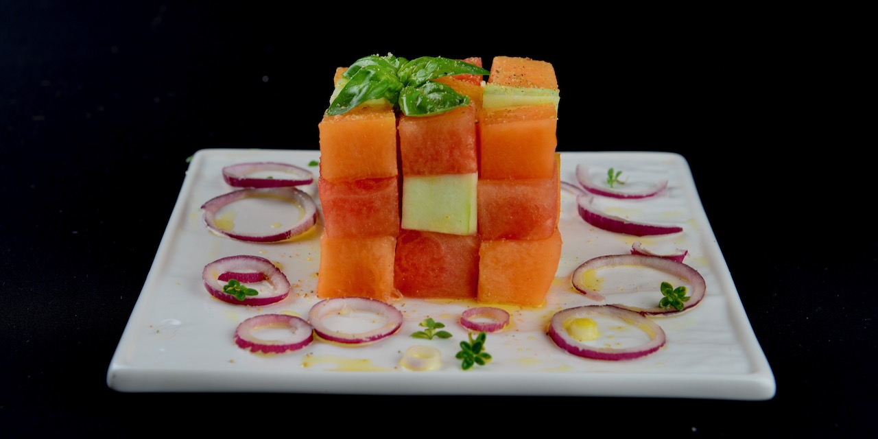 Sbuccia l’anguria, elimina i semini e tagliala a tocchetti.
