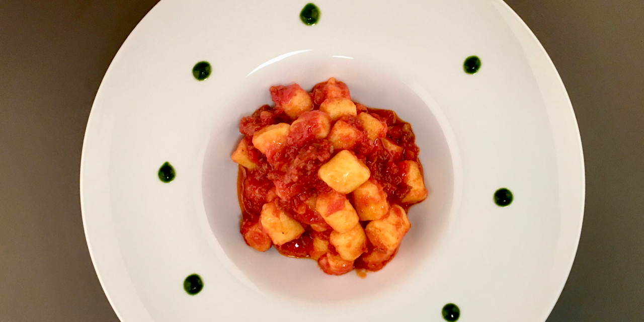 Maccheroni con carciofi in due consistenze, guanciale croccante e fonduta di provolone